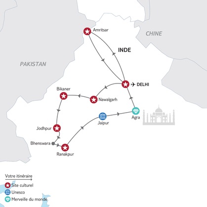 L’intérieur de certains temples est inaccessible aux non-hindous et lors de certaines fêtes, jours fériés et jours de congés locaux. En raison d’événements locaux (mariages…), des modifications de dernières minutes concernant les nuitées pourront survenir, des hébergements alternatifs seront confirmés et toutes les visites seront respectées, avec un ordre parfois différent. Si l'arrivée sur le site du Taj Mahal a lieu un vendredi, vous ne pourrez voir que l'extérieur du monument.
