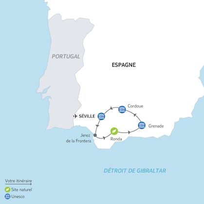 Laissez-vous charmer par les richesses architecturales et naturelles de l'Andalousie au volant de votre voiture. Palais arabo-andalous, patios fleuris, terre rouge plantée d'oliviers, ruelles ombragées, falaises escarpées... Vous goûterez à l'accueil chaleureux des Andalous, leurs bodegas, processions et férias, et visiterez les plus belles villes d'Espagne entre océan Atlantique et Sierra Nevada.