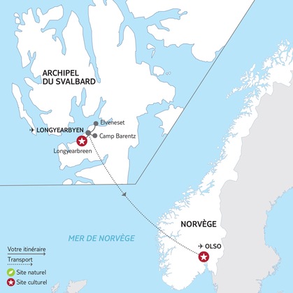 Dans l’après-midi, transfert à l'aéroport de Longyearbyen et envol pour Oslo Gardemoen.